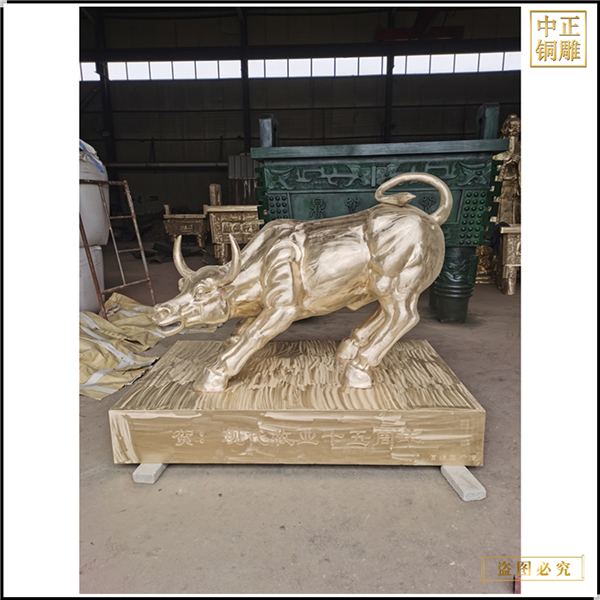 中正銅雕-黃銅華爾街銅牛鑄造廠 大型黃銅華爾街銅牛鑄造廠 黃銅華爾街銅牛鑄造廠家,我公司集科研、開發設計、普通鑄造、一次性整體澆鑄、精密鑄造于一體。本公司技術力量雄厚,設備,不但重視中國青銅器原有的藝術風格,還繼承了文物原有的藝術品味,在繼承和發揚古老文化的同時,更深一步為新老客戶定身量制各種銅制、鐵制工藝品等產品。